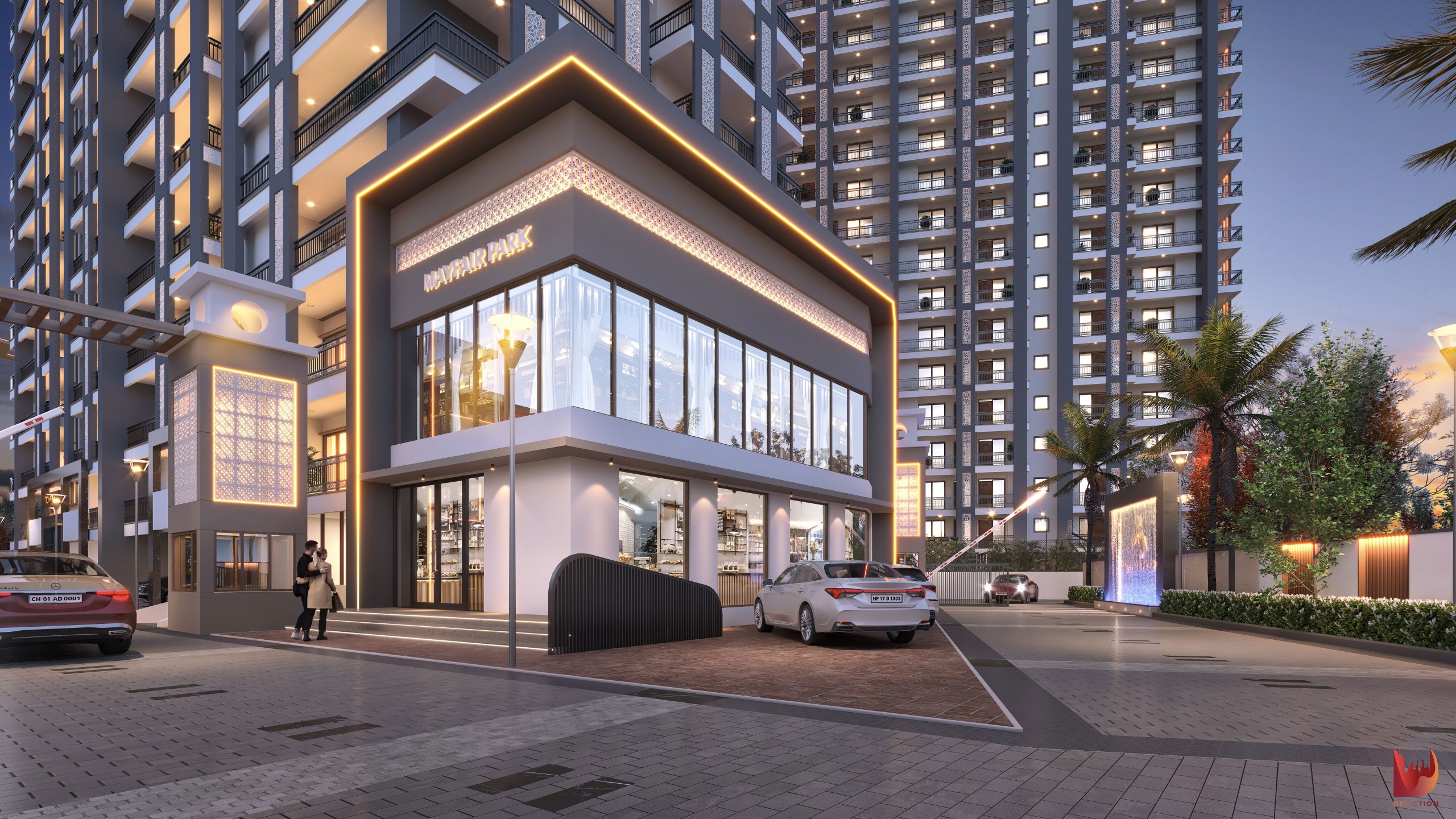 The High Rise towers with a sandwiched Unique Form of club in between the towers acts as a Interactive spaces for recreational Activities.